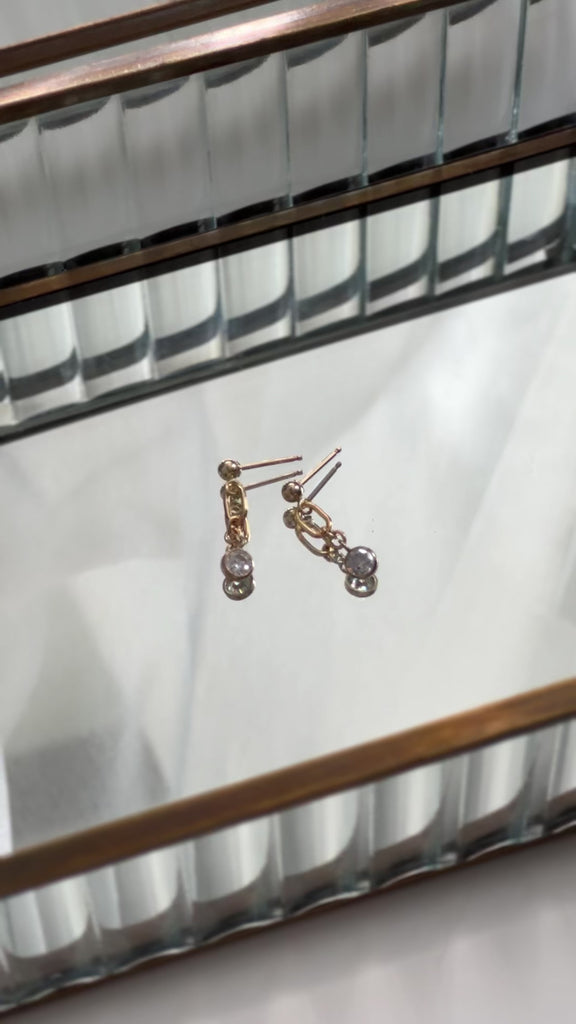 The Crystal Accent Earrings showcase contemporary elegance through their streamlined silhouette and luminous appeal. Each piece features a precisely cut 4.5mm cubic zirconia suspended from a delicate gold filled frame, creating a refined aesthetic that captures light beautifully. Designed for versatility, these earrings transition seamlessly from daily wear to evening occasions, offering understated sophistication with subtle radiance.