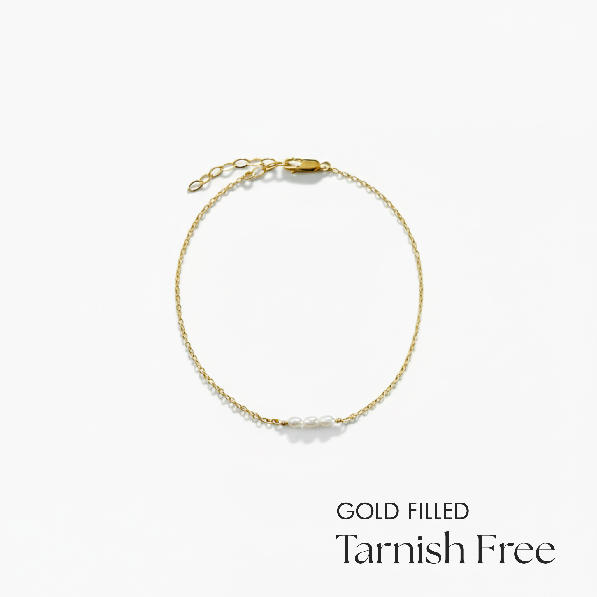 3 Seed Pearl Bracelet features three tiny seed pearls set along a fine gold filled chain. The soft luster of the pearls adds a subtle focal point, while the slim chain keeps the look light and effortless. Designed to sit naturally on the wrist, it layers beautifully with other bracelets or stands alone as a quiet, everyday piece. A timeless design that complements both casual and refined styles.