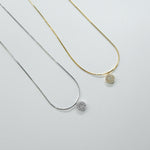 A whisper of shine with celestial charm — the Nova Crystal Circle Necklace features a delicately set 5mm circle pendant adorned with tiny, closely set cubic zirconia stones. The refined snake chain drapes like liquid gold or silver, offering a graceful, barely-there feel. Lightweight and endlessly wearable, this dainty piece brings just the right touch of radiance to your everyday.